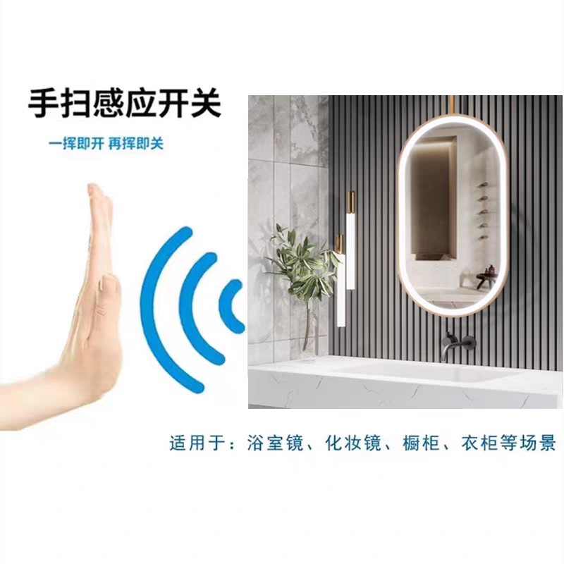 新款玻璃鏡片滑動開關衛浴鏡智慧型感應開關浴室淨手掃感應燈光開關