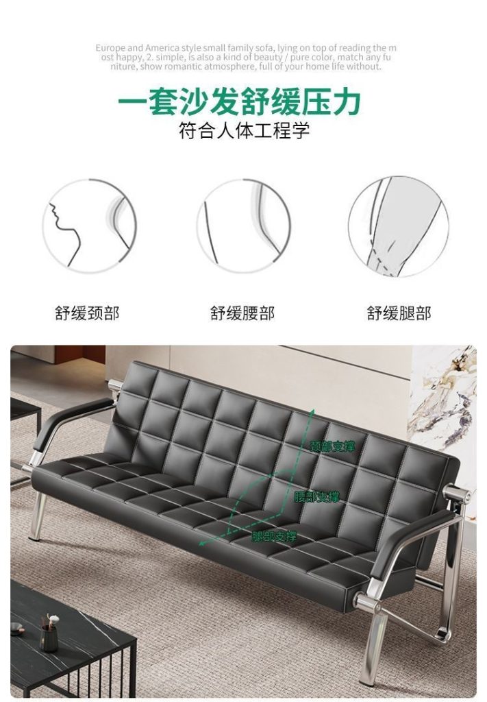 現代簡約高檔商務三人位排椅鐵藝等候椅單人等候椅會客辦公沙發組合