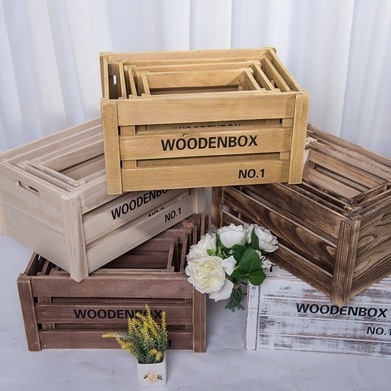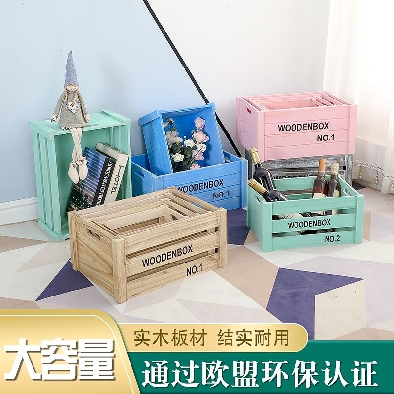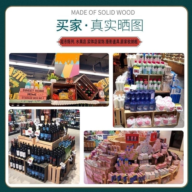 超市水果木箱婚禮木質道具收納復古木盒長方形復古擺攤木箱收納陳列超市展示裝飾