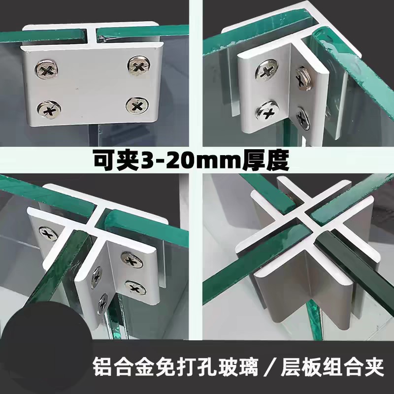 鋁合金玻璃夾固定支架托層板夾木板組合夾90度180度T型十字型夾子玻璃五金