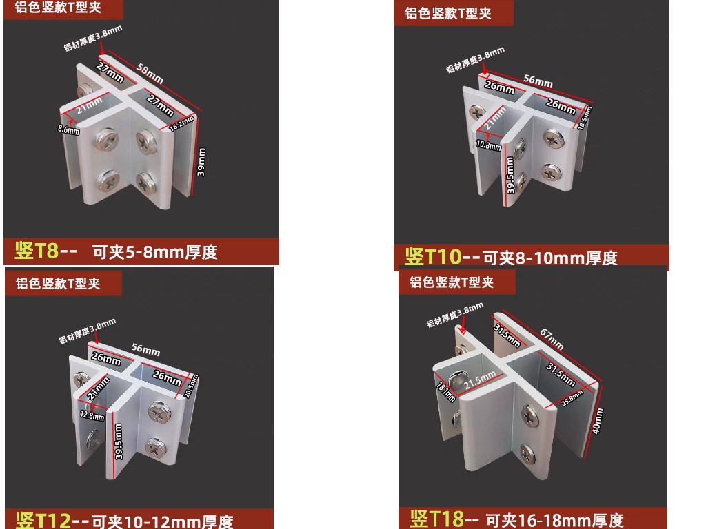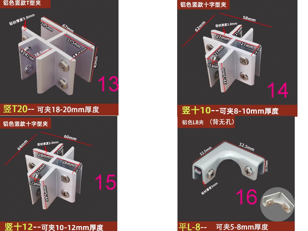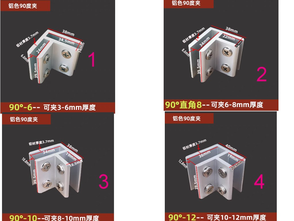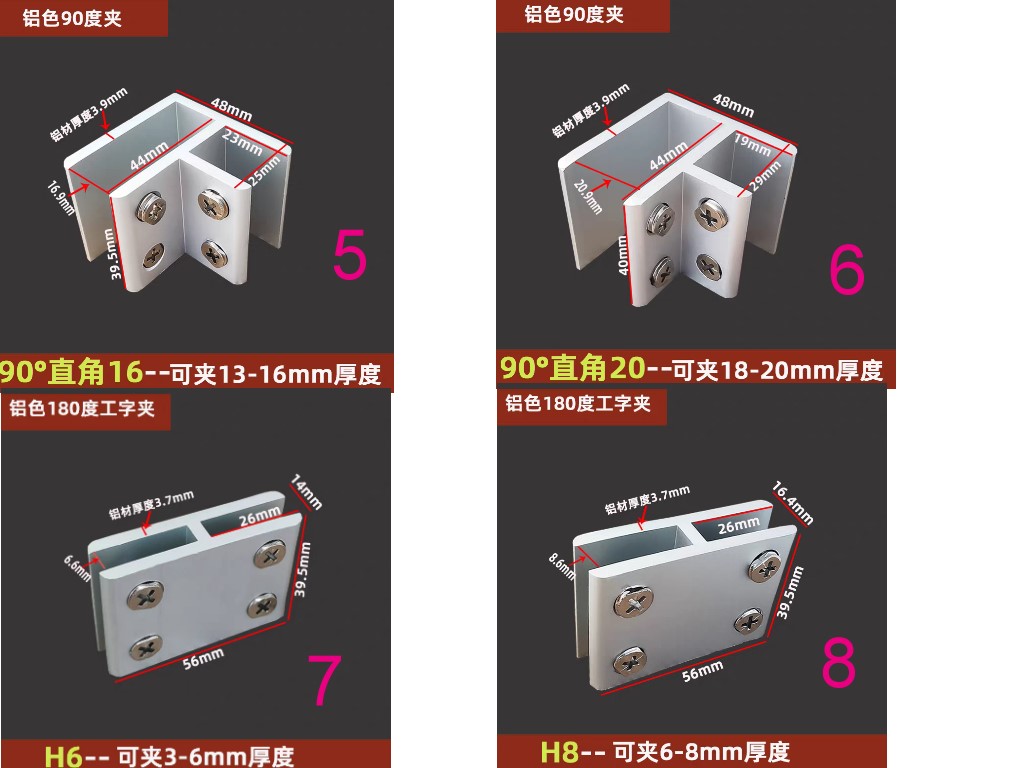 鋁合金玻璃夾固定支架托層板夾木板組合夾90度180度T型十字型夾子玻璃五金配件夾具