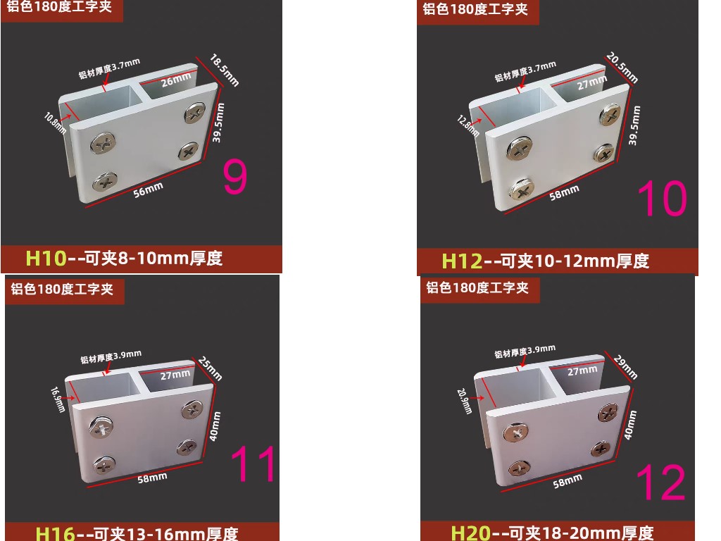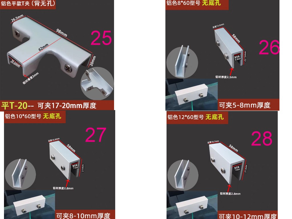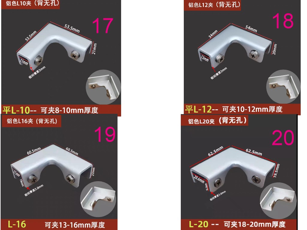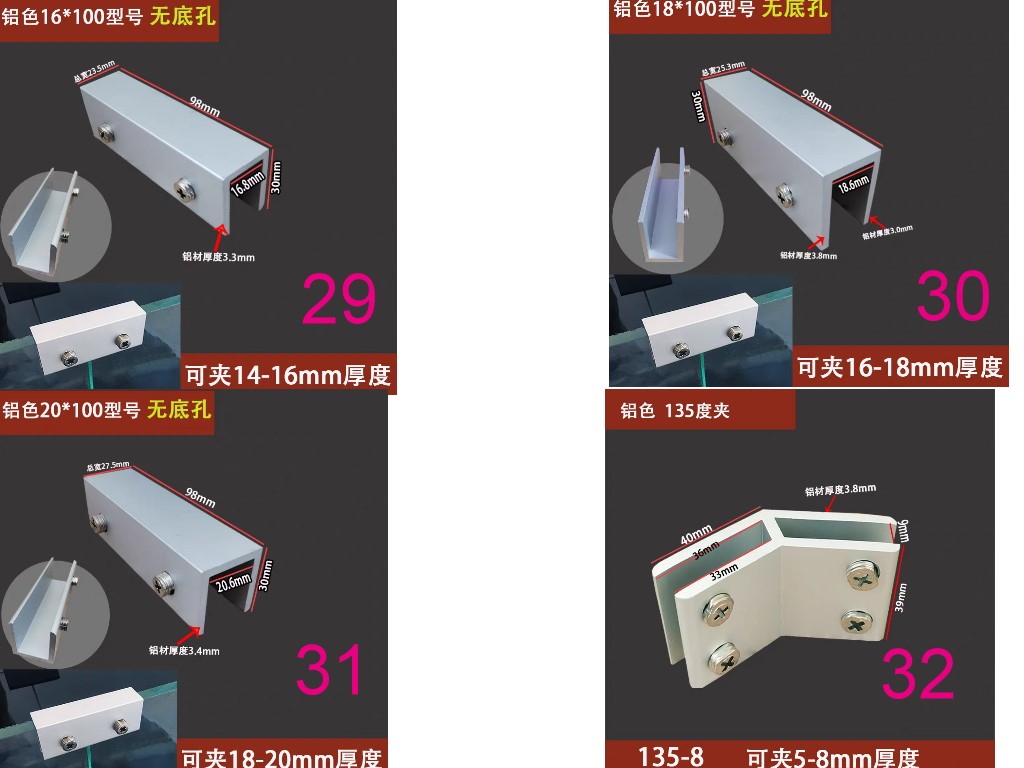 鋁合金玻璃夾固定支架托層板夾木板組合夾90度180度T型十字型夾子玻璃五金配件夾具
