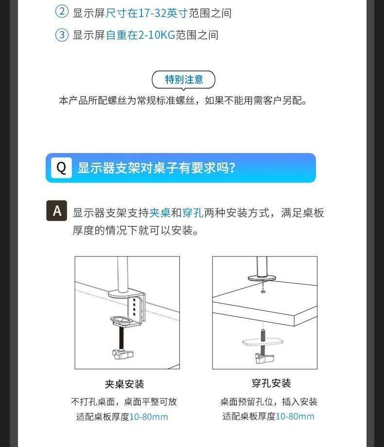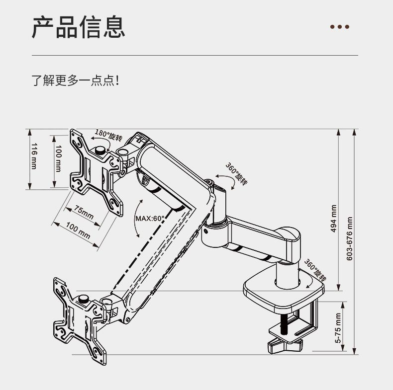 電腦顯示器支架顯示螢幕懸臂支架機械手臂可旋轉升降台式螢幕顯示器懸臂掛支架增高伸縮架 數量