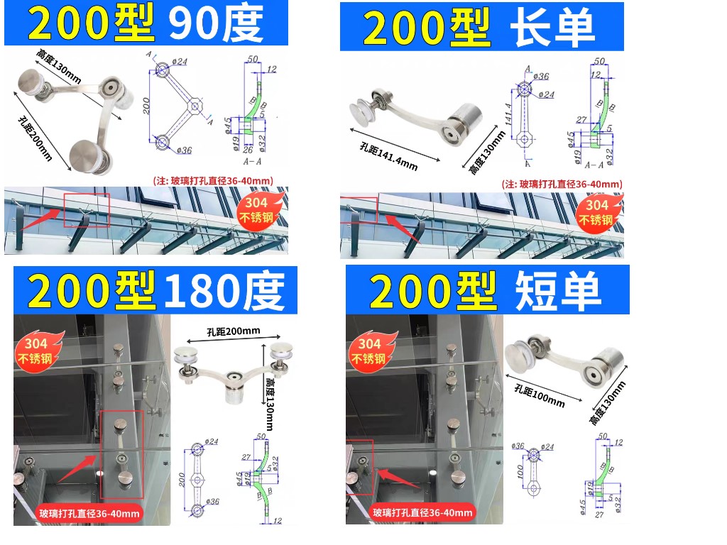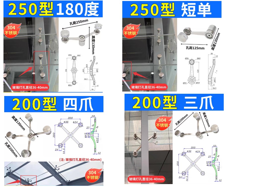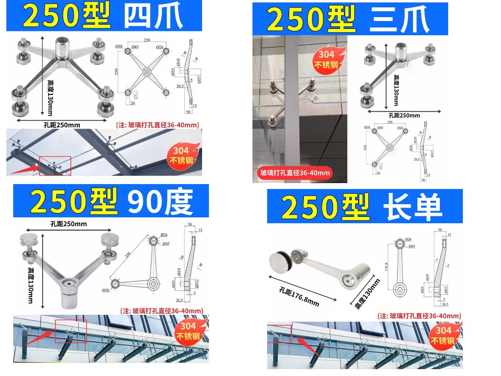 304不鏽鋼駁接爪帷幕牆件強化玻璃固定抓雨棚支架配件玻璃固定器玻璃夾具
