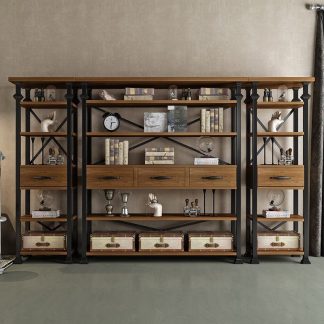 辦公室落地多層簡約展示架客廳工業風復古實木隔板置物書架展示架