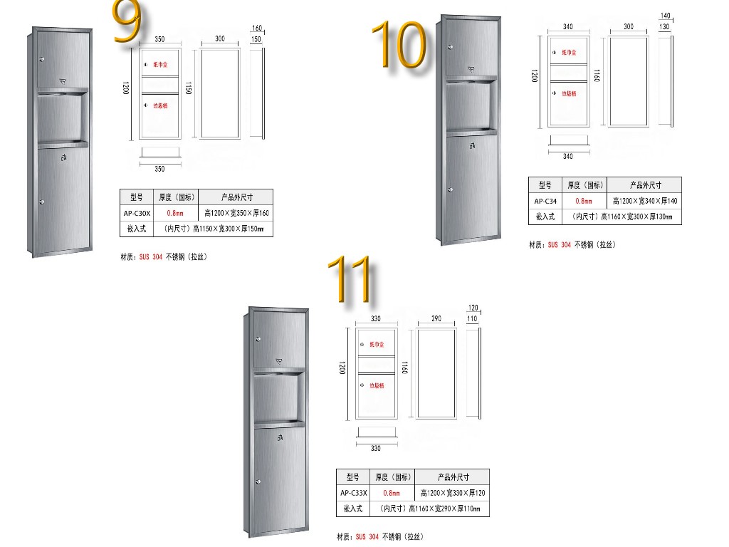 不鏽鋼擦手紙盒附垃圾桶嵌入牆式紙巾架手紙箱抽紙盒埋壁式擦手紙架 數量