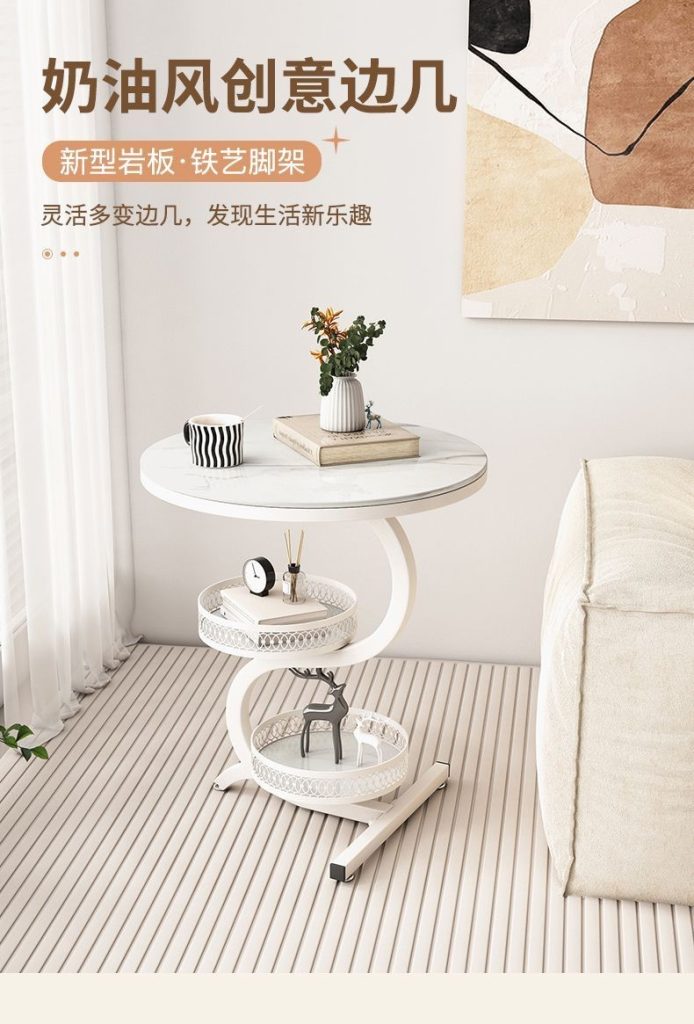 奶油風岩板茶几輕奢客廳家用臥室網紅小邊幾簡約沙發角幾陽台圓桌