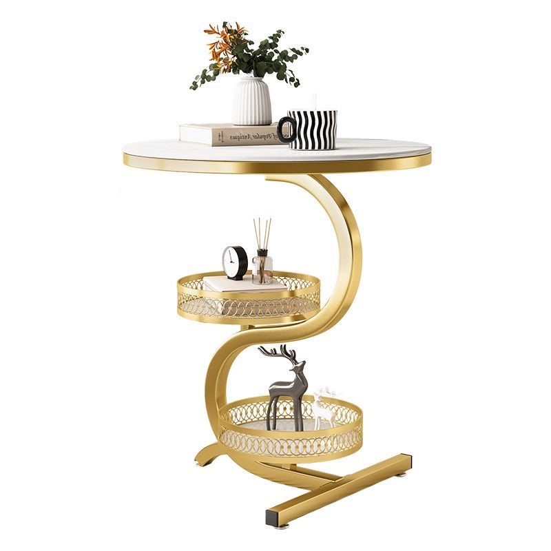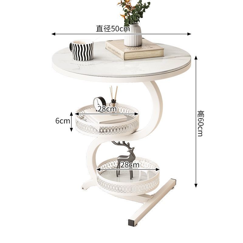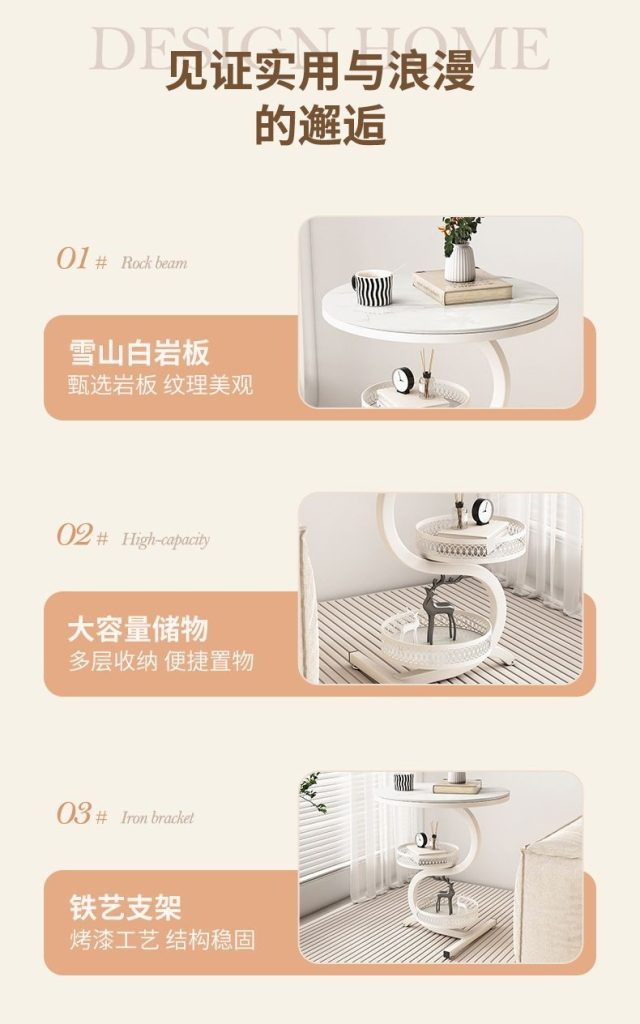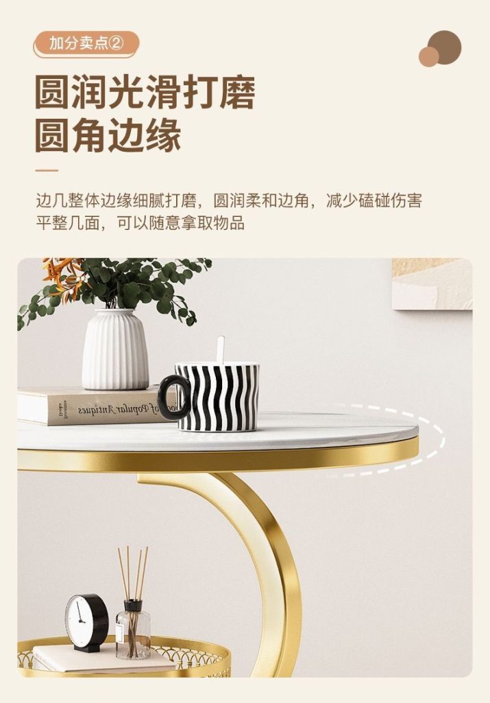奶油風岩板茶几輕奢客廳家用臥室網紅小邊幾簡約沙發角幾陽台圓桌 數量