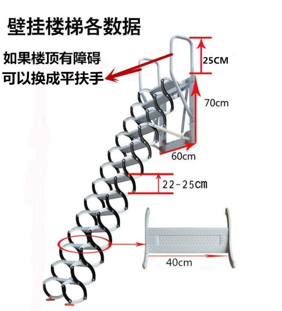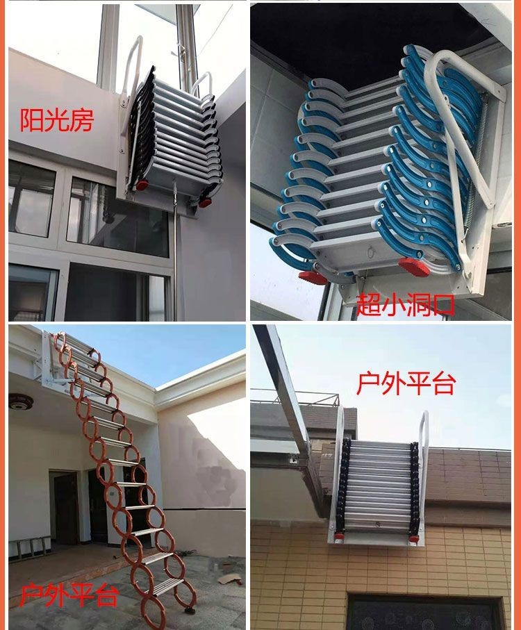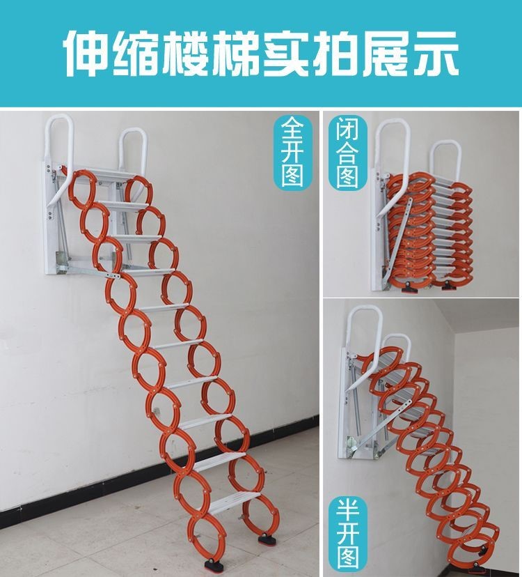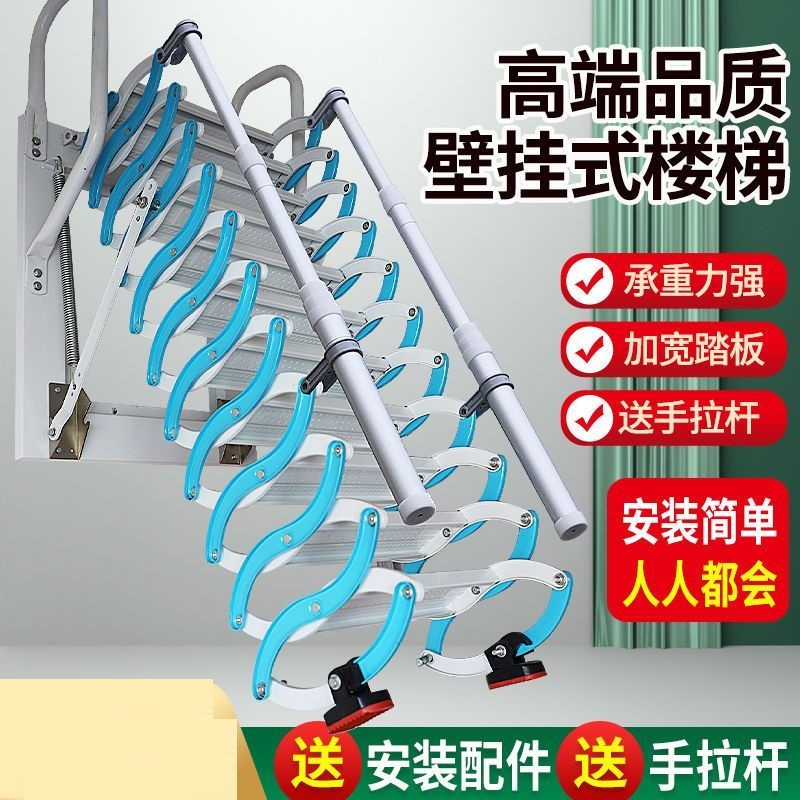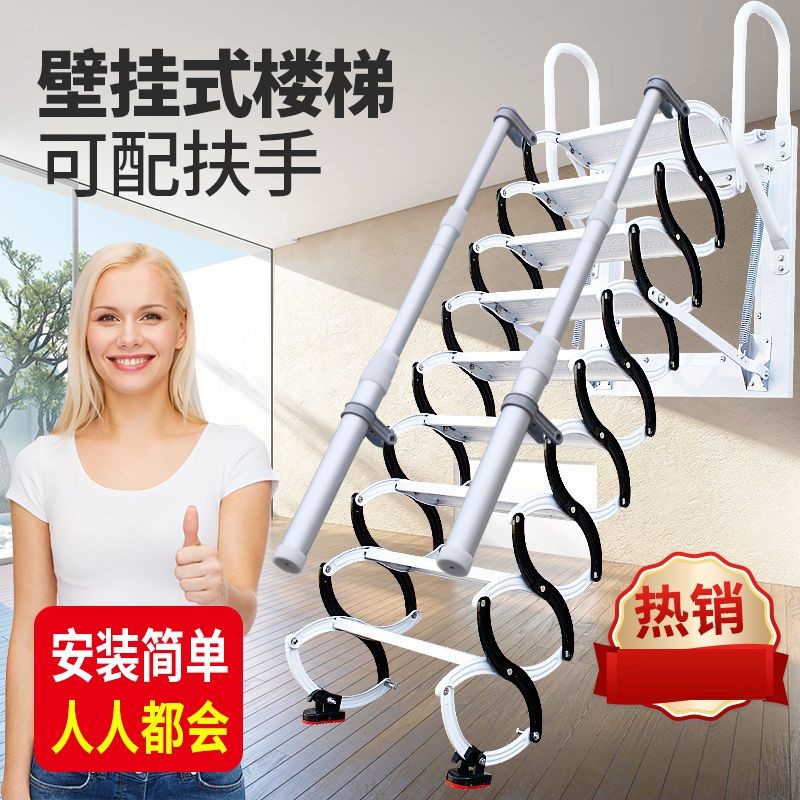室外壁掛樓梯閣樓折疊伸縮梯室內隱形複別墅家用升降梯樓梯天台梯摺疊梯 數量