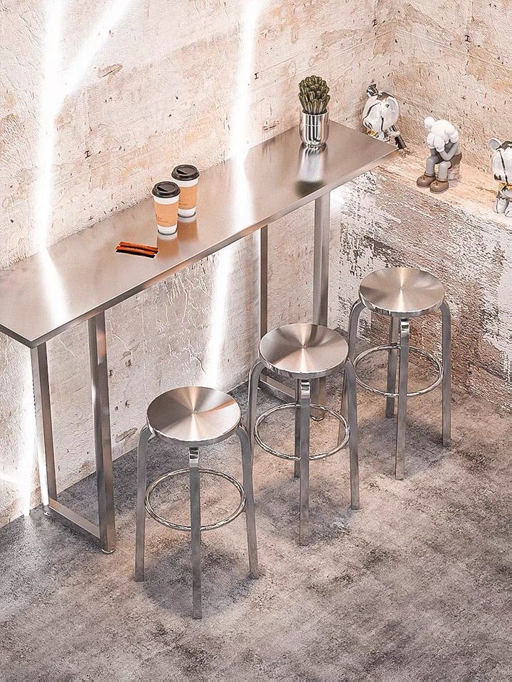工業風吧檯椅高腳凳咖啡廳戶外吧椅金屬不銹鋼椅加厚凳子