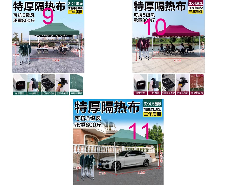 7.8號(3×3)$2800元9.10號(3×4)$3500元11號(3×4.5)$3700元