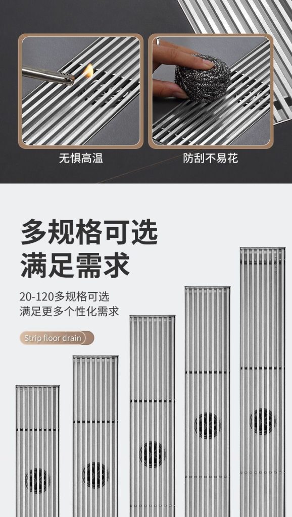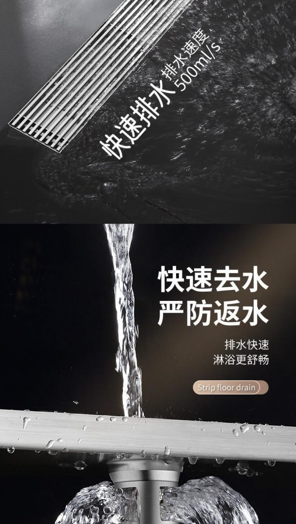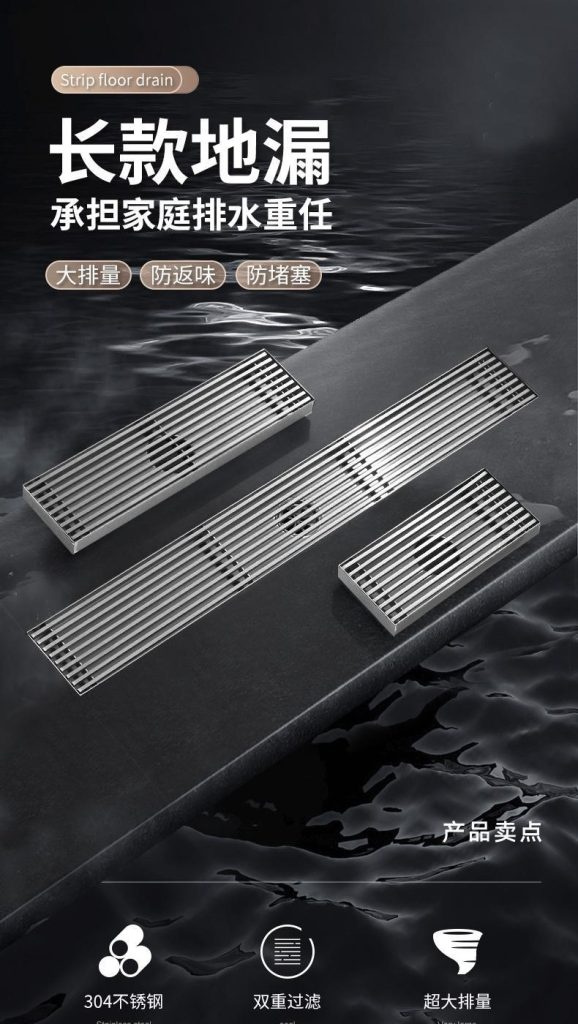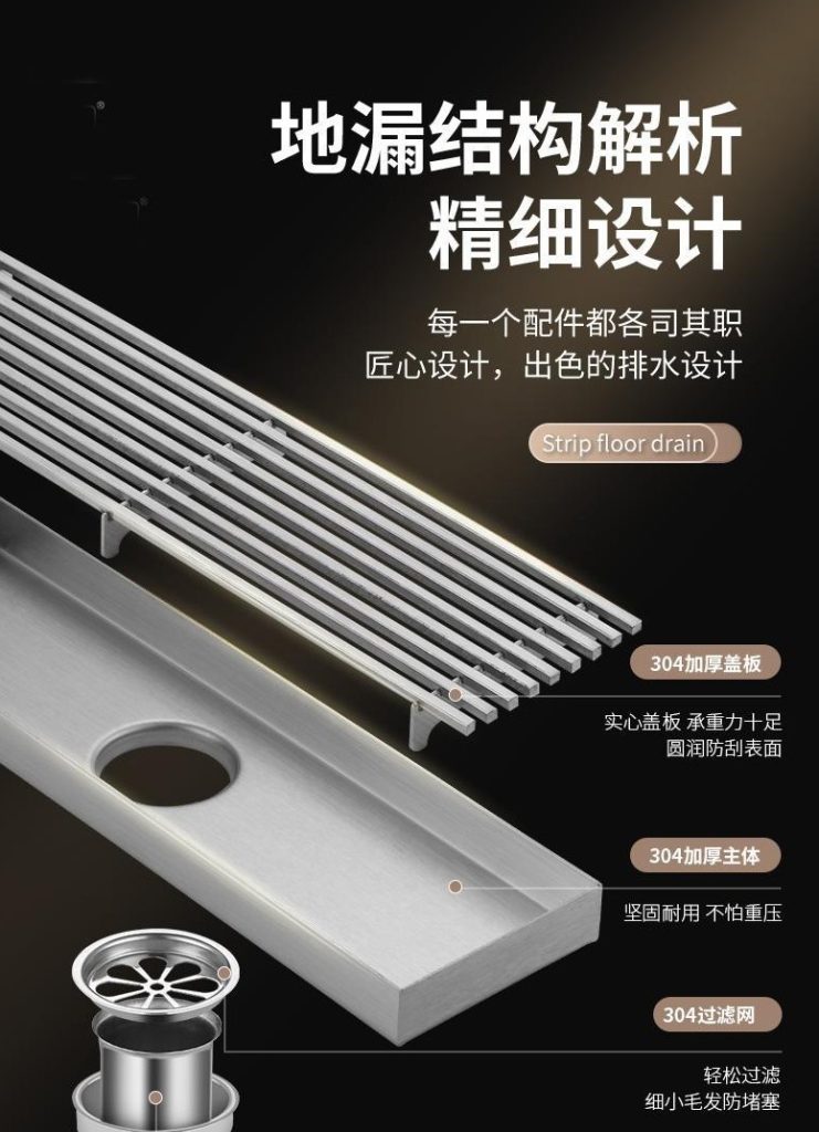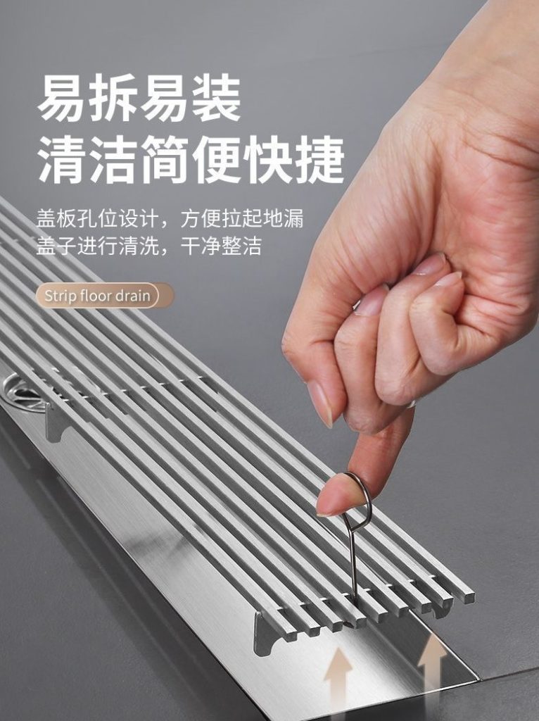 落水頭集水槽下水器防臭地漏長方形304不銹鋼家用排水槽長形集水槽多孔排水