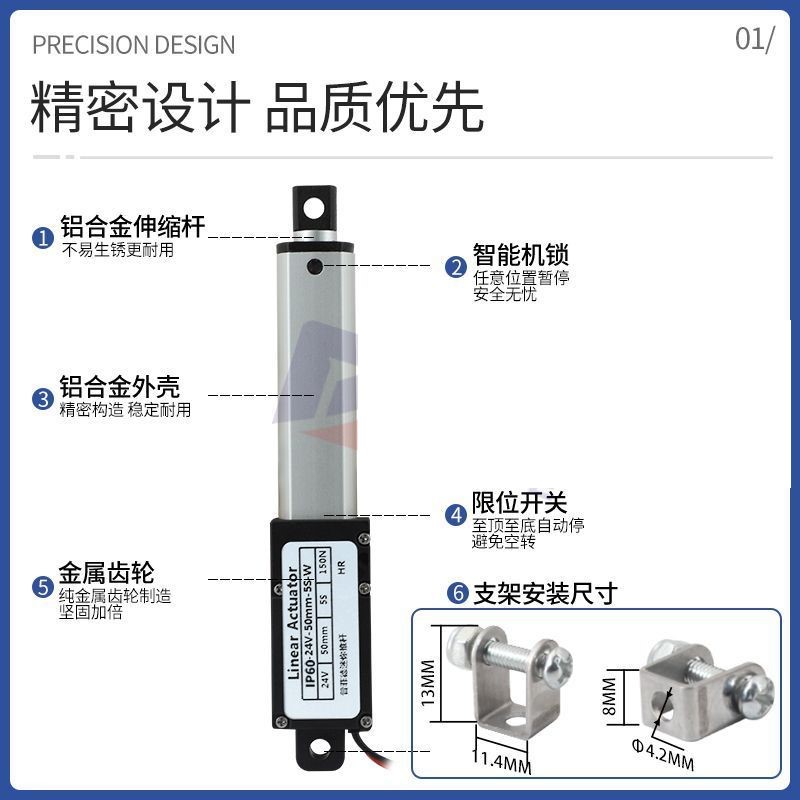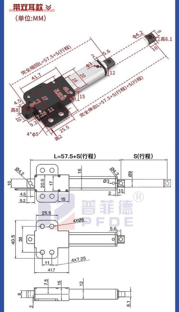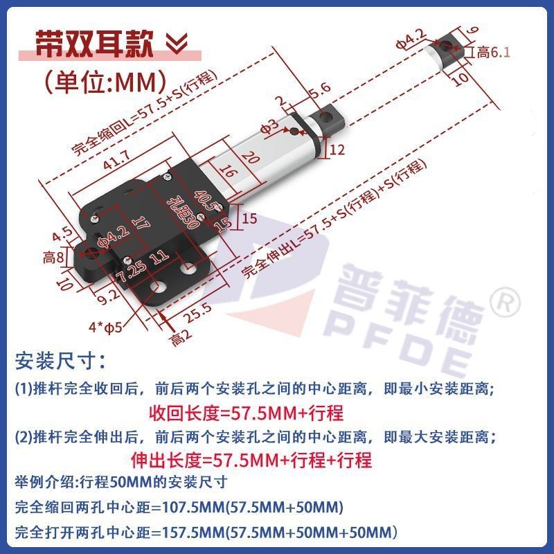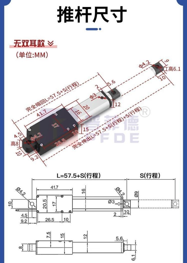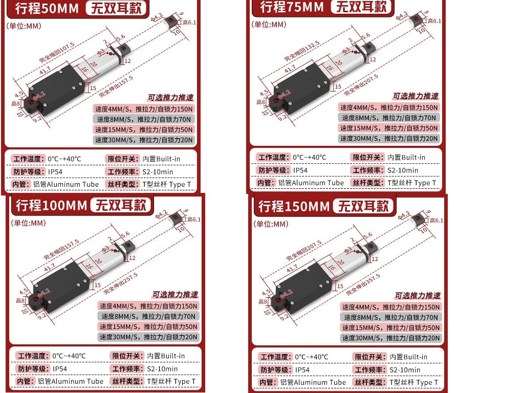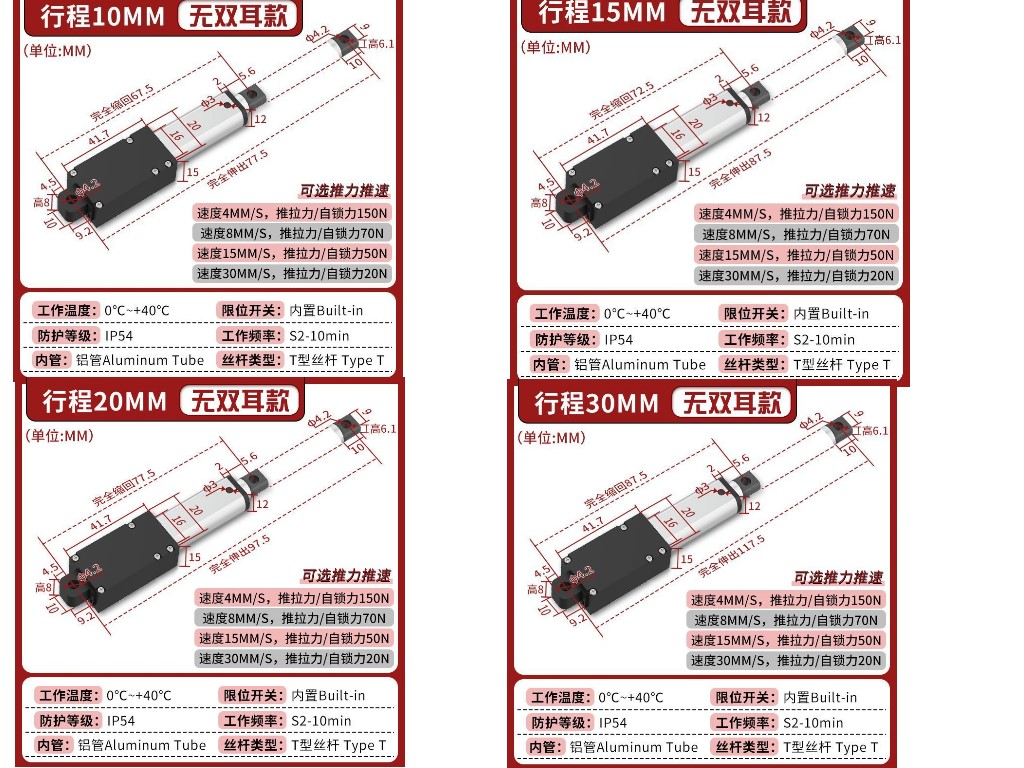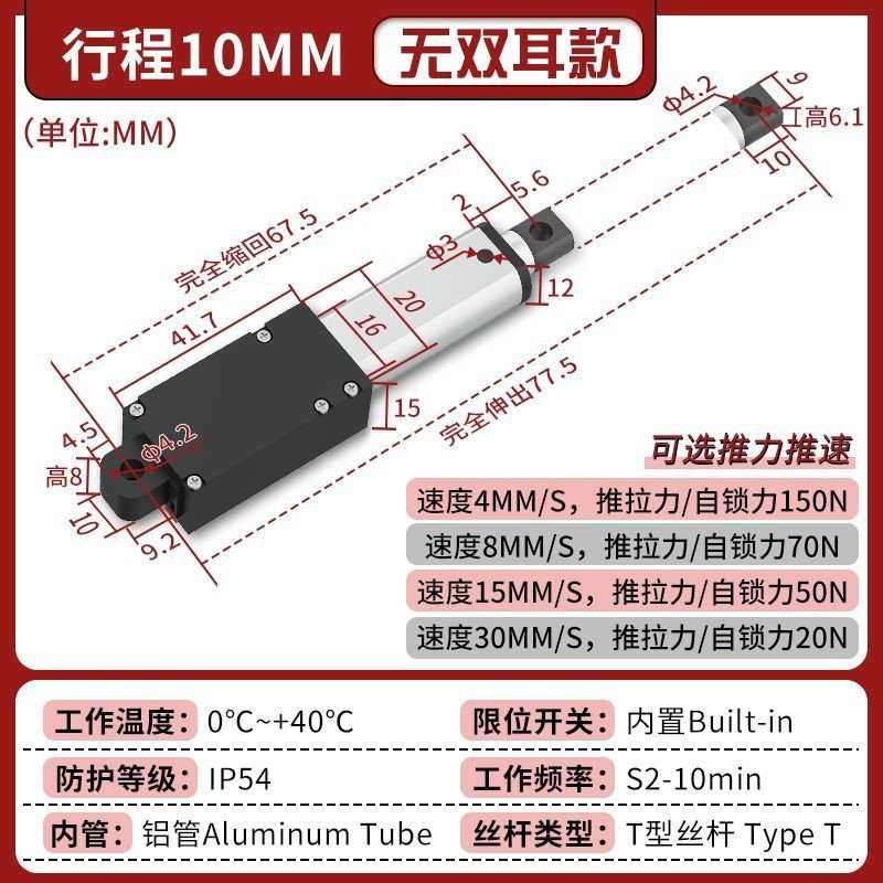 迷你電動推桿電動缸電動螺桿靜音鋁合金材質雙頭平底直流往復伸縮桿微型
