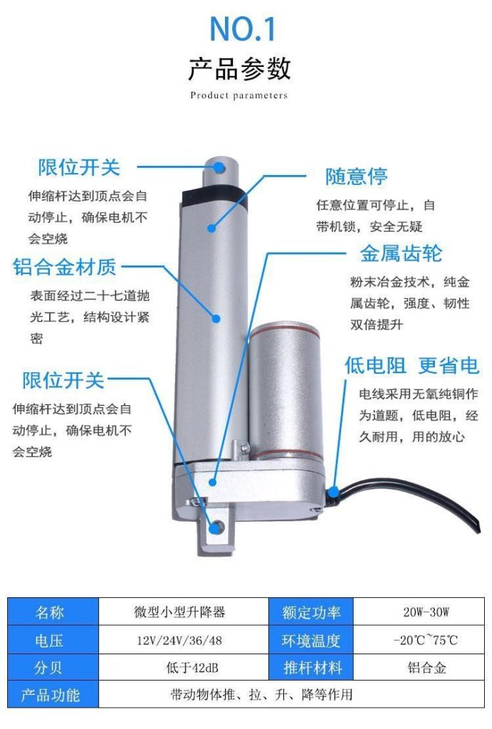 • 伸縮桿達到底部自動停止確保電機不會空燒