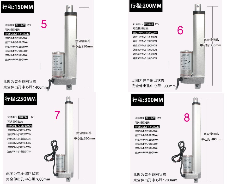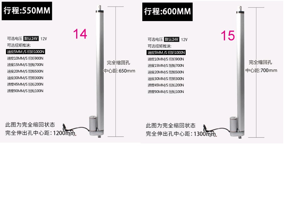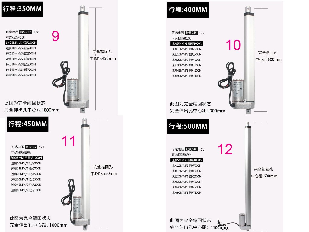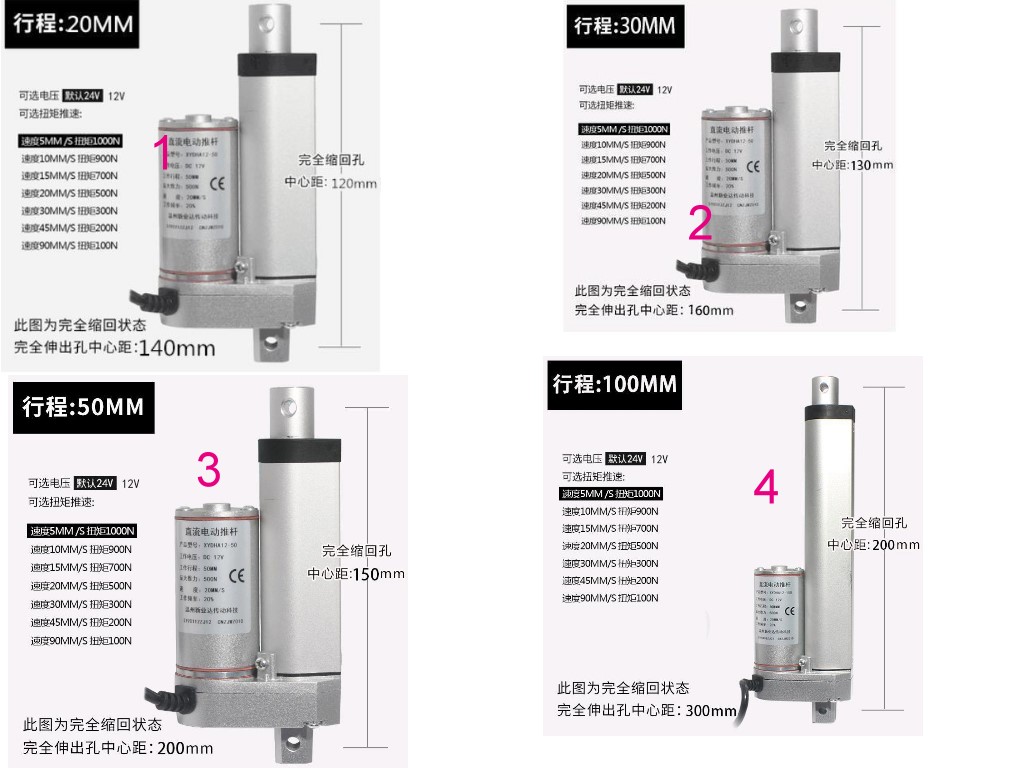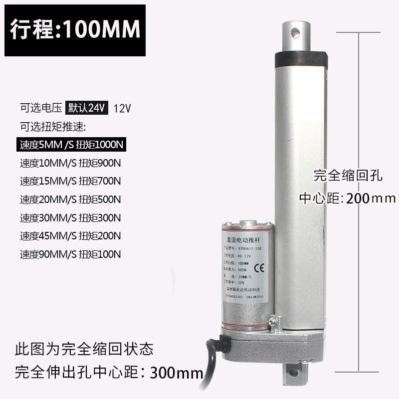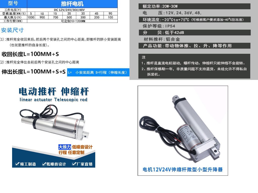 電動推桿電動缸電動螺桿靜音鋁合金材質雙頭平底直流馬達大推力往復伸縮桿微型升降器