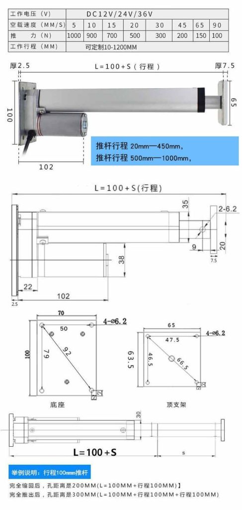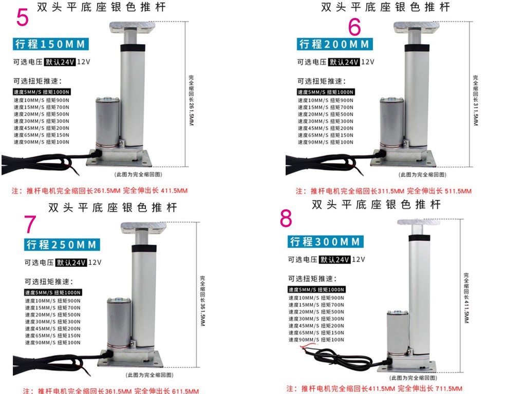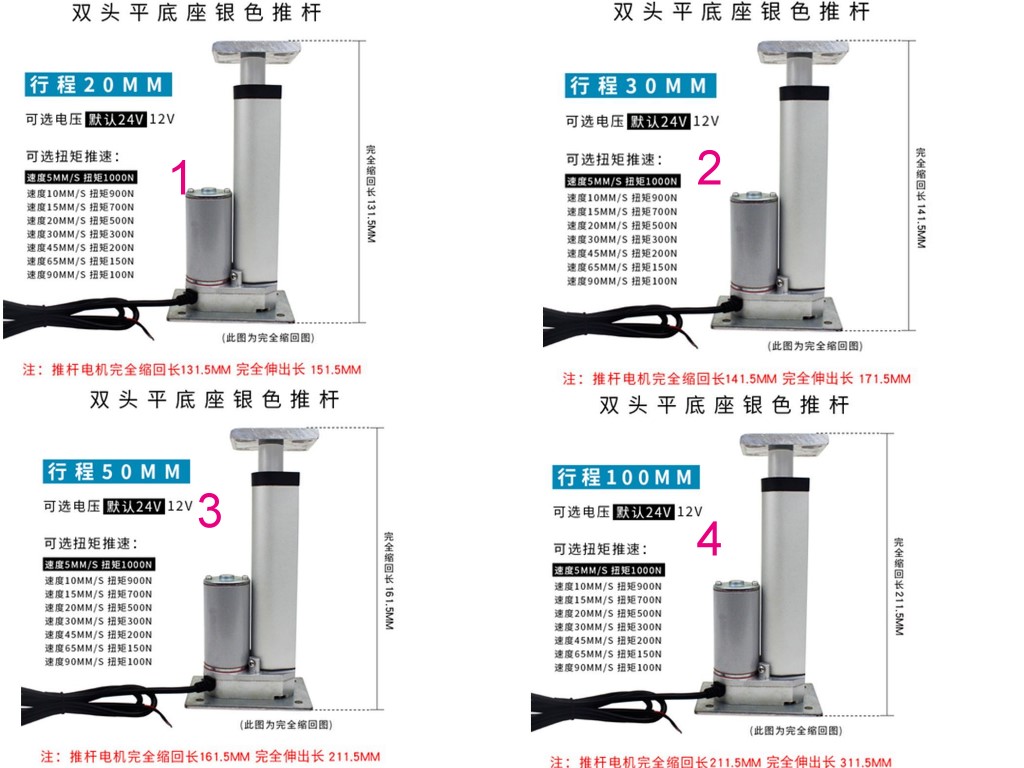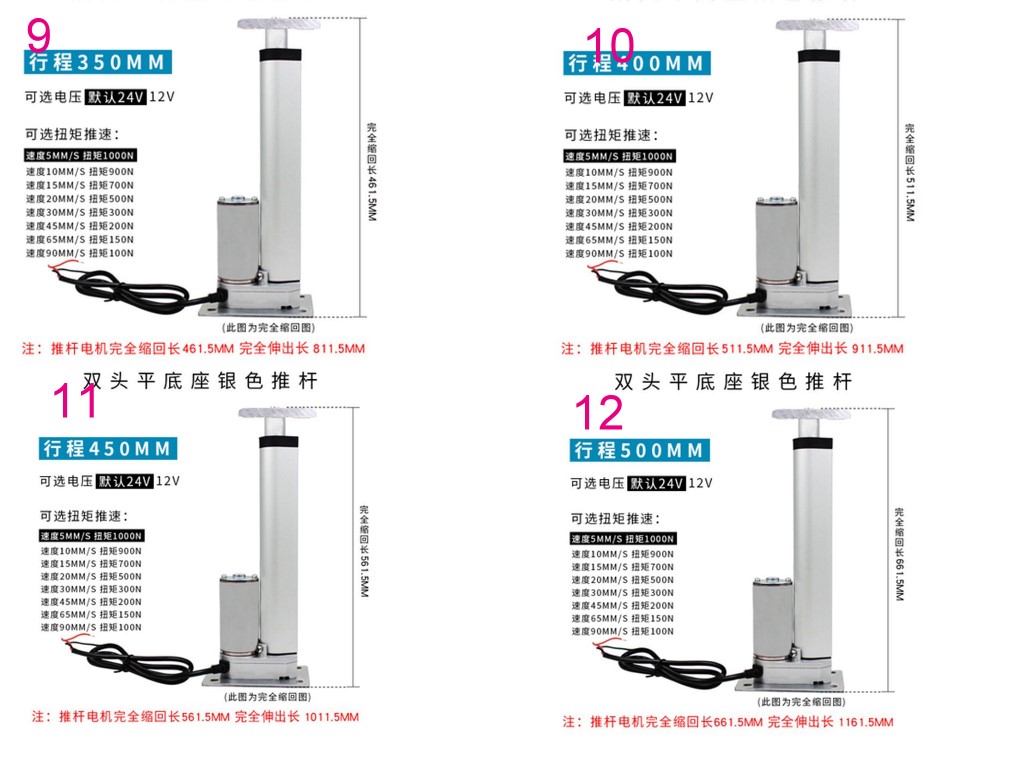 電動推桿電動缸電動螺桿靜音鋁合金材質雙頭平底直流馬達大推力往復伸縮桿微型升降器
